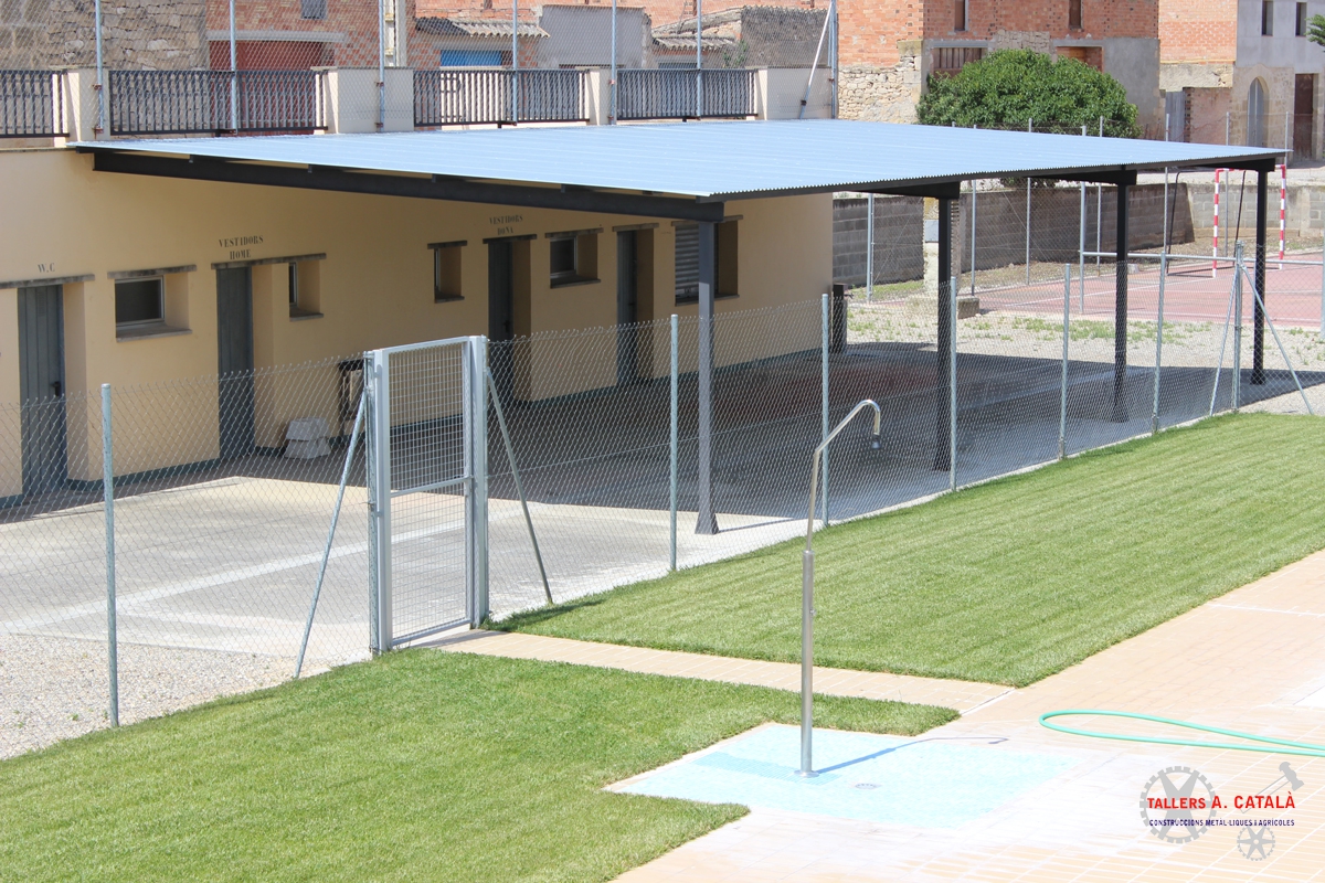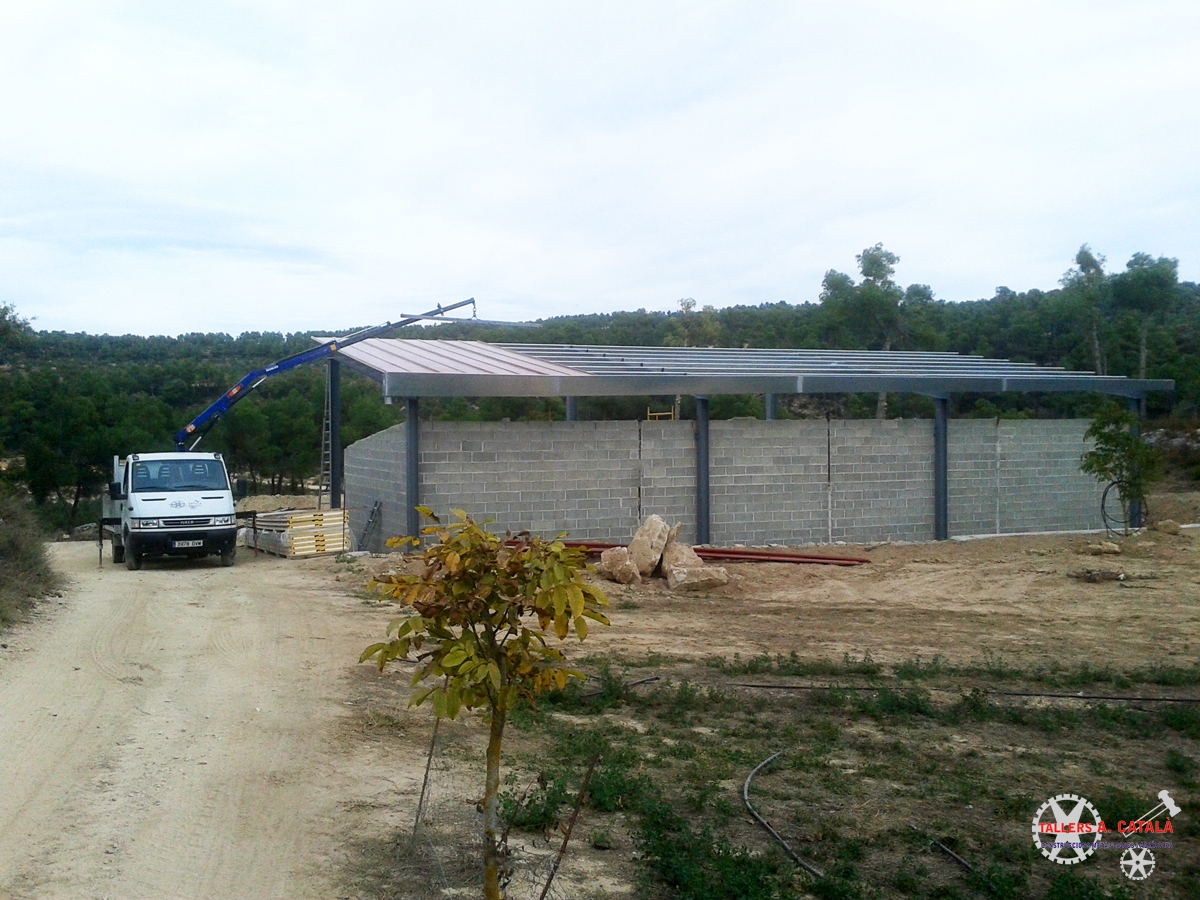 Estructura metálica con paredes y cubiertas de panel aislante; y claraboyas en el techo y las paredes para aportar luz natural al interior de la estructura.
